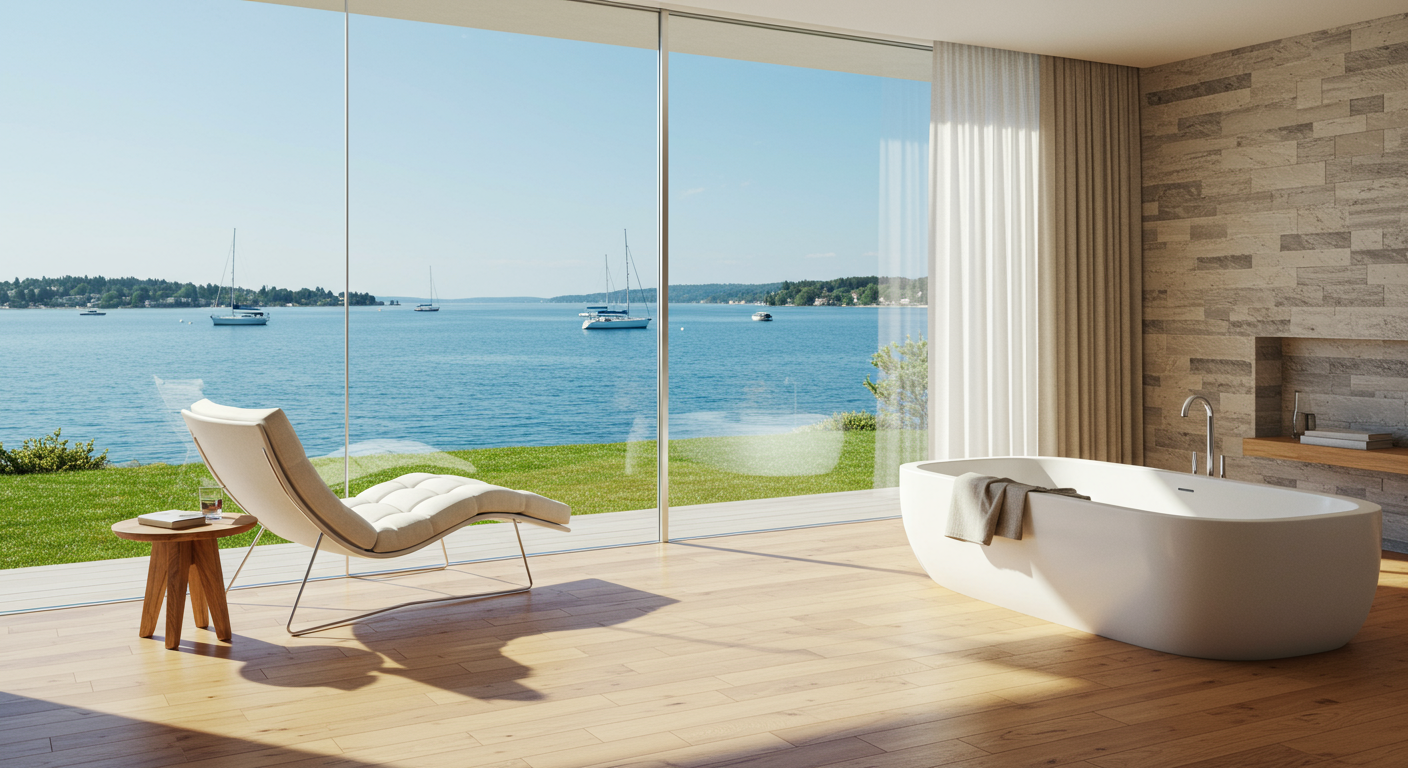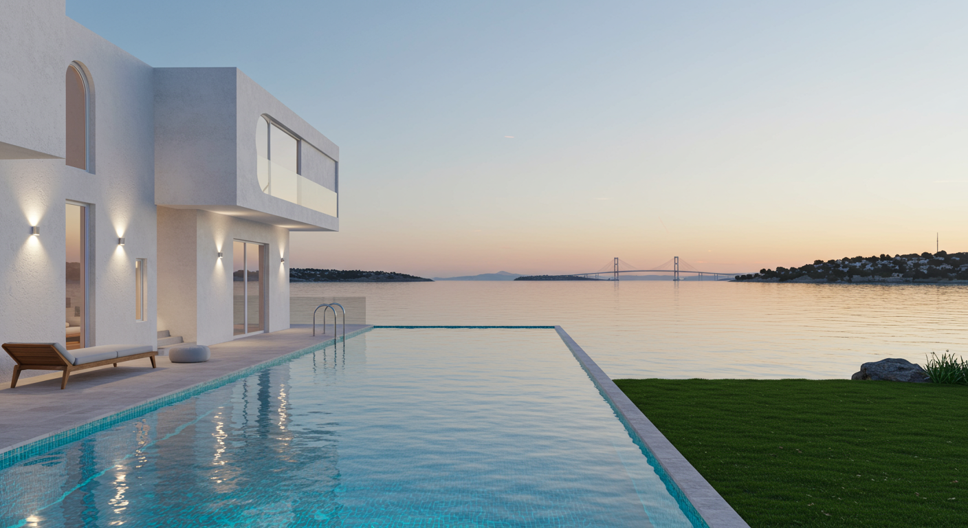 - Rare absolute due north facing position with 22m frontage, private beach and direct access to the harbor for boats and water taxis