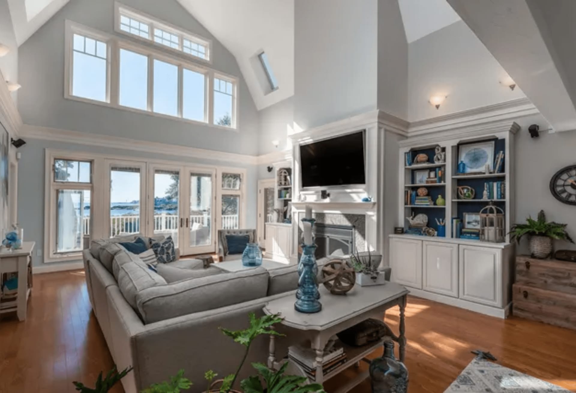 Introducing 19 Intervale Road, a luxurious coastal retreat in Cape Neddick. Custom-built, this shingle-style home exudes elegance. Nestled on a half-acre lot, it captures ocean views and the Nubble Lighthouse from every room. Inside, soaring ceilings and expansive windows fill the home with light, extending to an ocean-side deck. The dining room features a coffered ceiling, the kitchen boasts custom cabinetry and built-ins. The main level offers a primary bedroom suite and adjacent laundry. Upstairs, two guest suites have private ocean-side balconies, and a library offers a cozy reading space. The lower level features a family room, home office, and full bath, with access to two one-car garages. A new fire pit patio and partially fenced side yard invite outdoor entertainment. This property offers versatility and strong rental potential, whether a primary residence or vacation getaway.